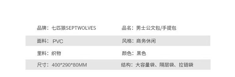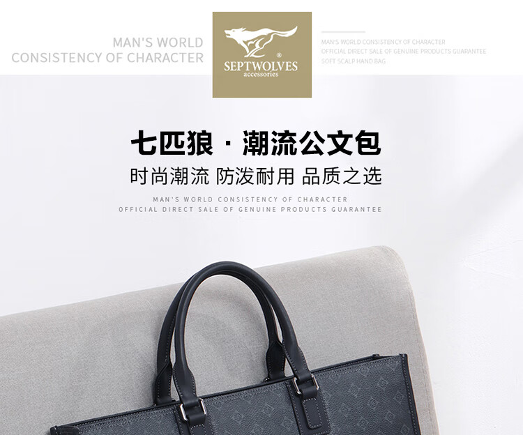 七匹狼男士通勤商務(wù)大容量公文包電腦包PD114660-6