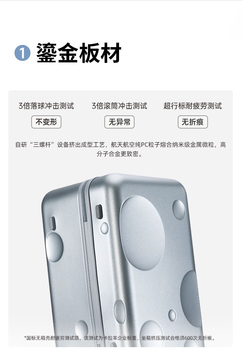 貨號: CX8126-28 主體面料:聚碳酸酯(PC);里料:織物 28寸顏色:隕石黑 凈重: 4.30kg/93L