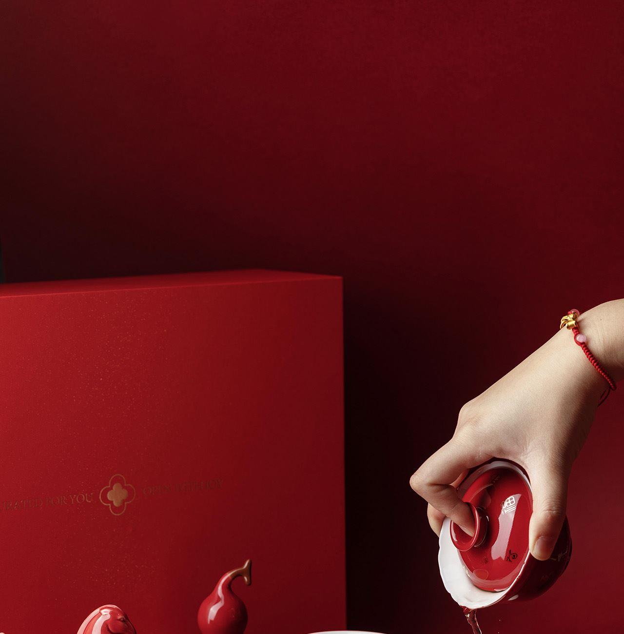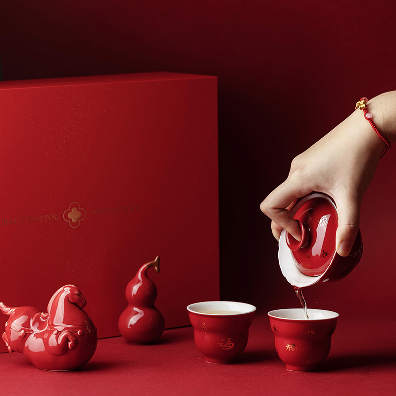 尾橋下窯新年伴手禮故宮紅陶瓷福祿雙全功夫茶具套裝商務(wù)贈品