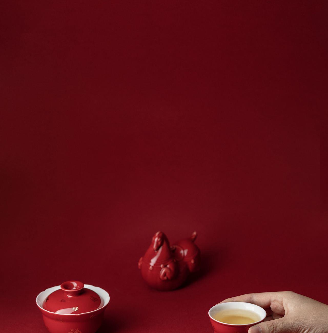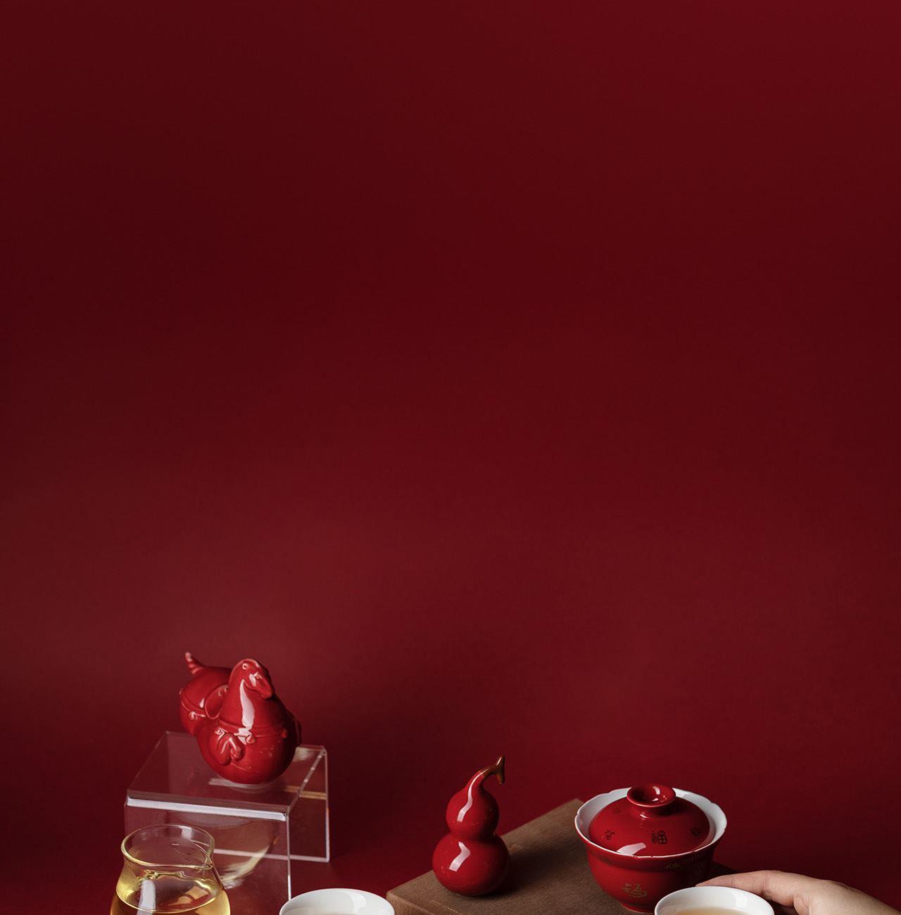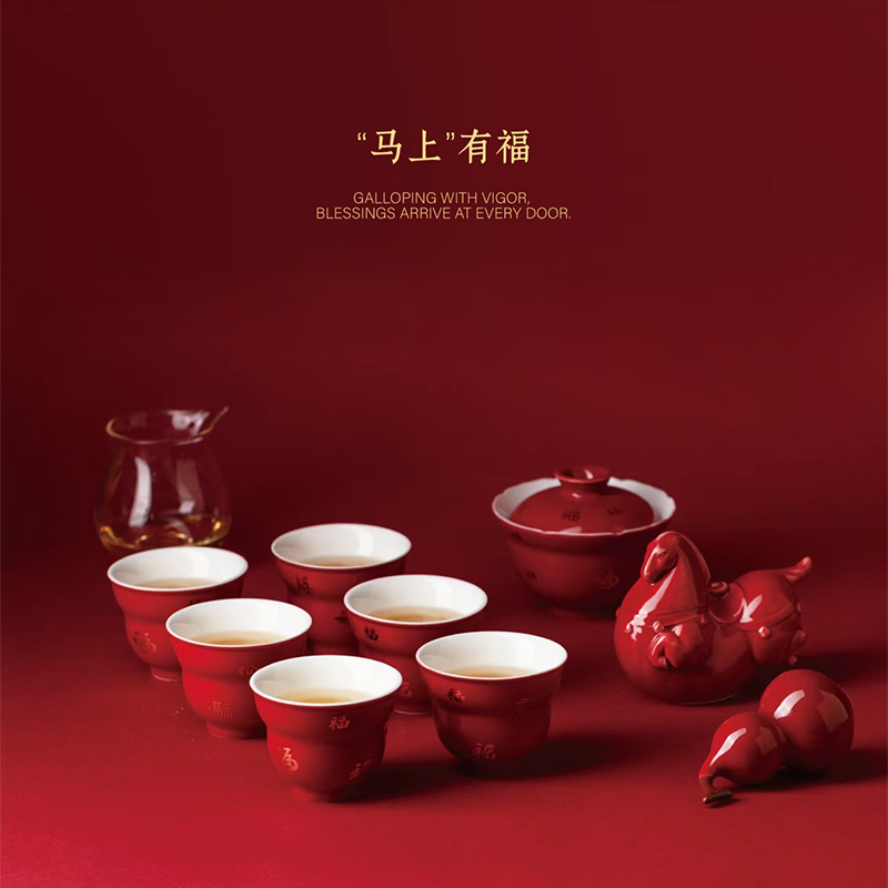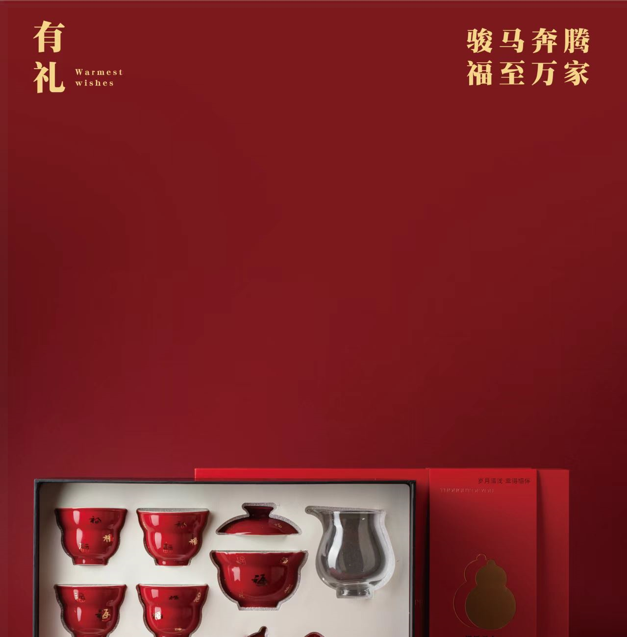 尾橋下窯新年伴手禮故宮紅陶瓷福祿雙全功夫茶具套裝商務(wù)贈品 禮品已成功加入PPT!