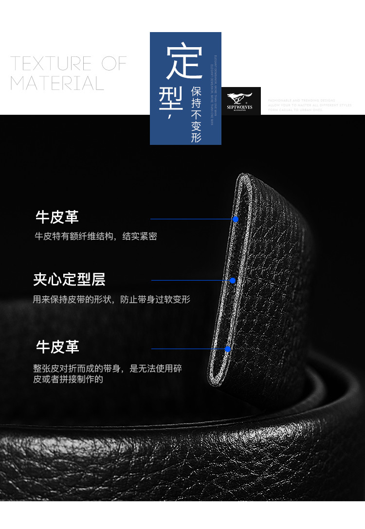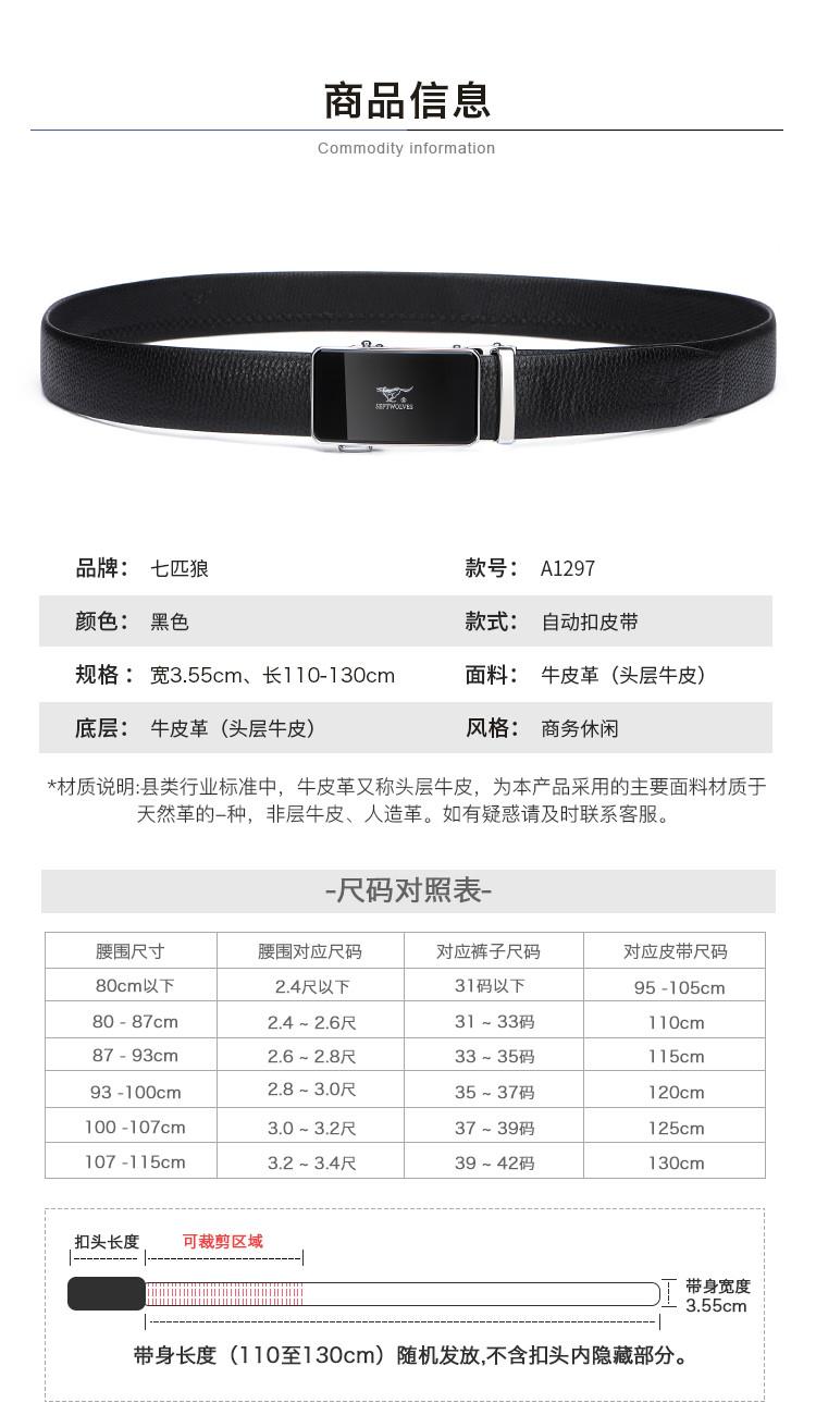 七匹狼男士頭層牛皮自動扣皮帶A1297-1 七匹狼男士頭層牛皮自動扣皮帶A1297-1