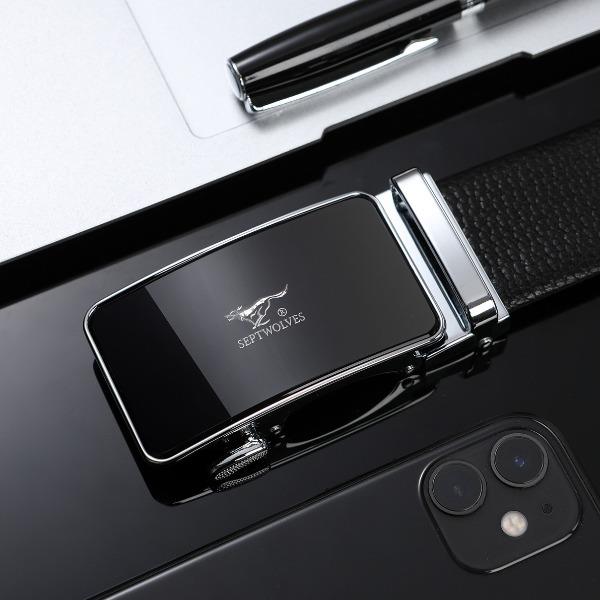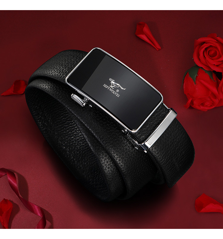 七匹狼男士頭層牛皮自動扣皮帶A1297-1