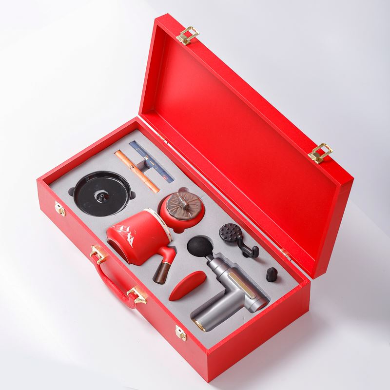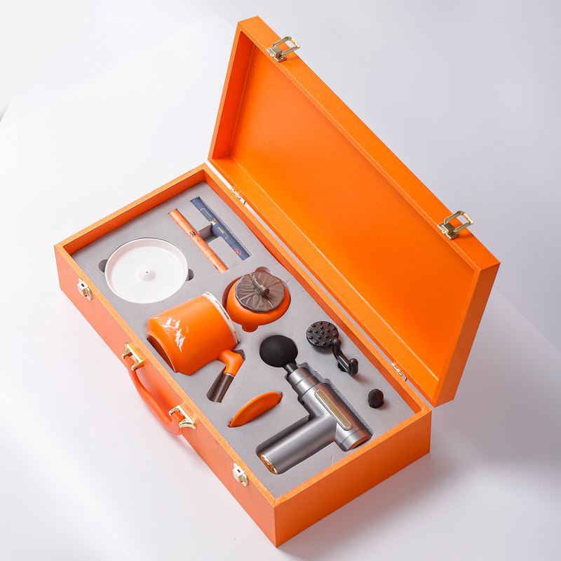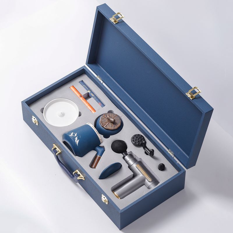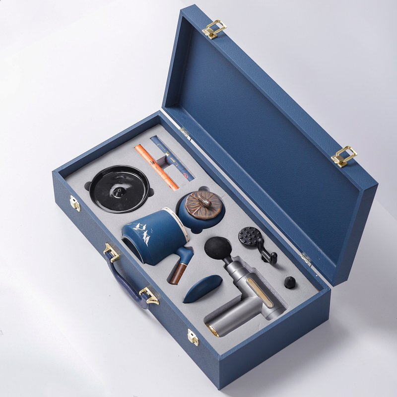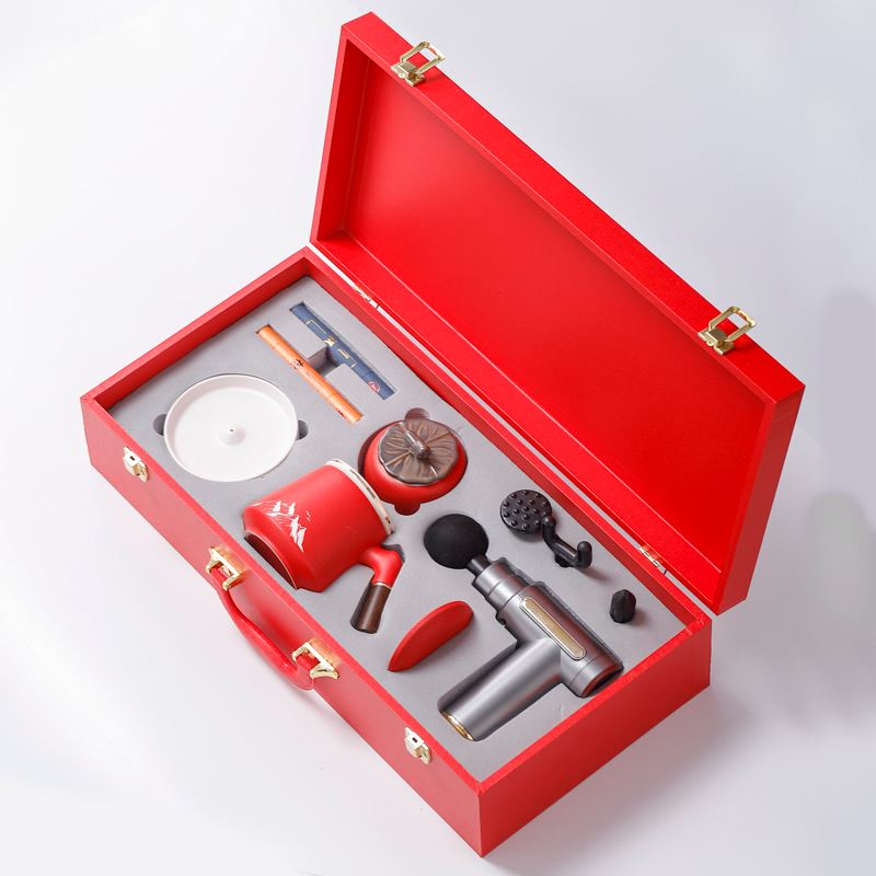 配 制: 1辦公杯1筋膜槍 1香盤 2條香 1茶葉罐 錦盒 規(guī)格: 辦公杯14.5*10.4cm 禮盒38.2*11cm 茶葉罐9.6*9cm 工藝:香道套裝,配香盤,2條線香。專業(yè)級(jí)筋膜槍,6檔變速,4種按摩頭,液晶觸屏,深度緩解肌肉酸脹。商務(wù)實(shí)用性禮品,上班族剛需產(chǎn)品。