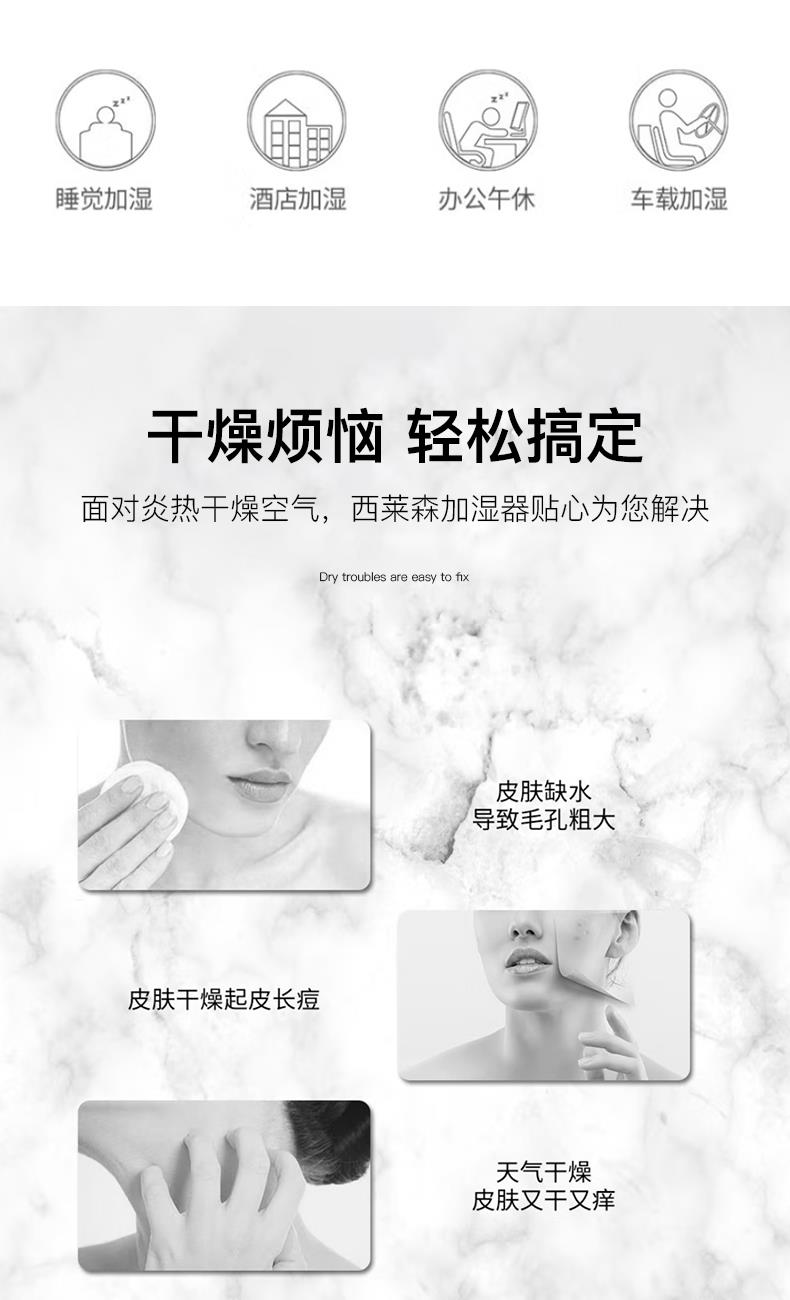 1、細(xì)膩水霧,補(bǔ)水滋潤(rùn),出霧量大,范圍更廣