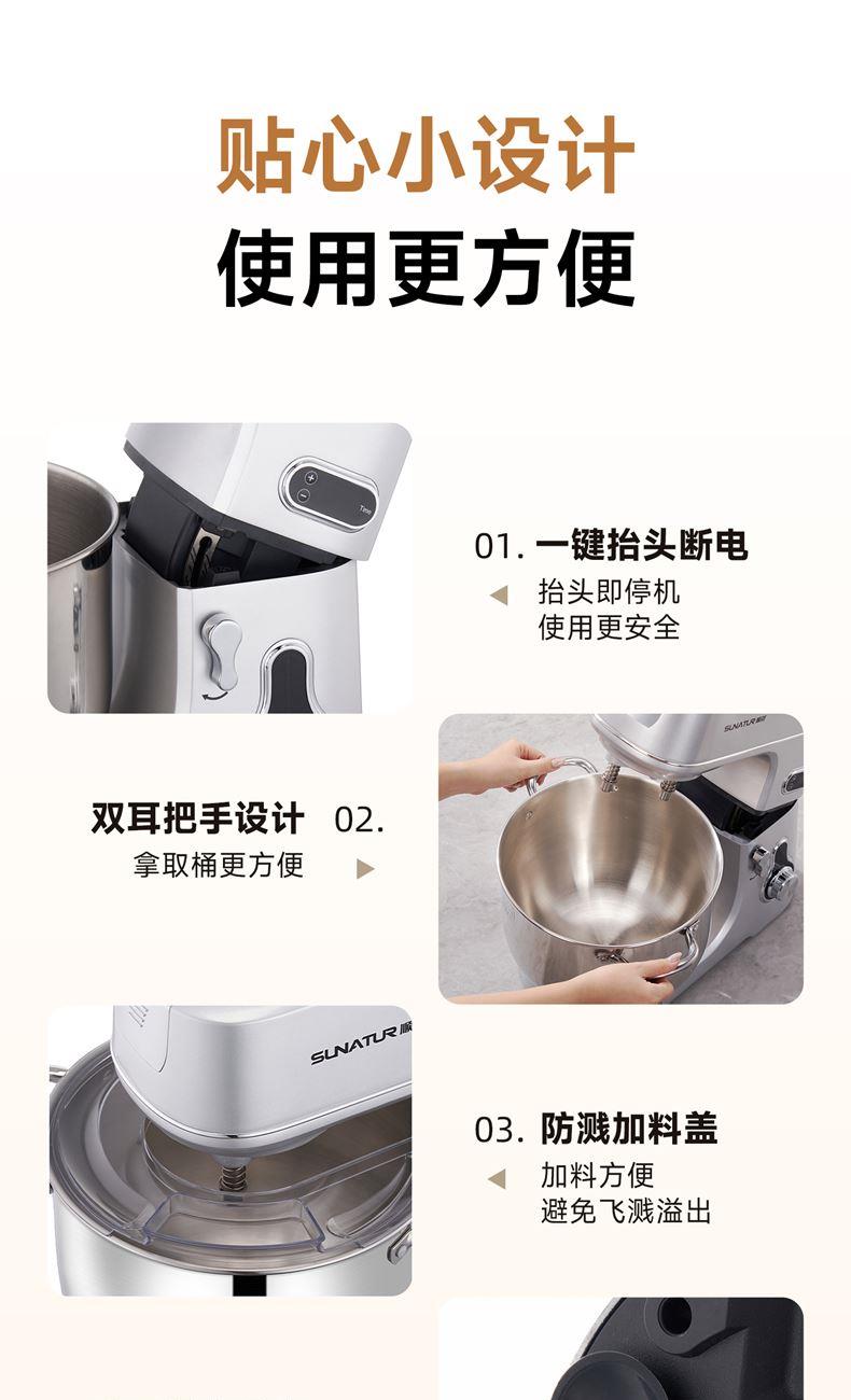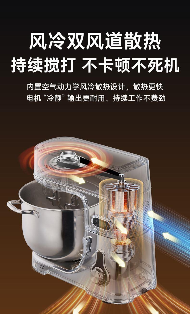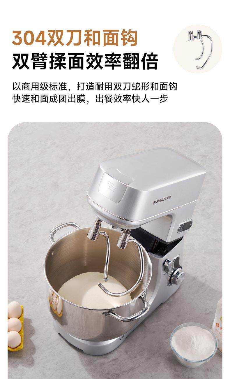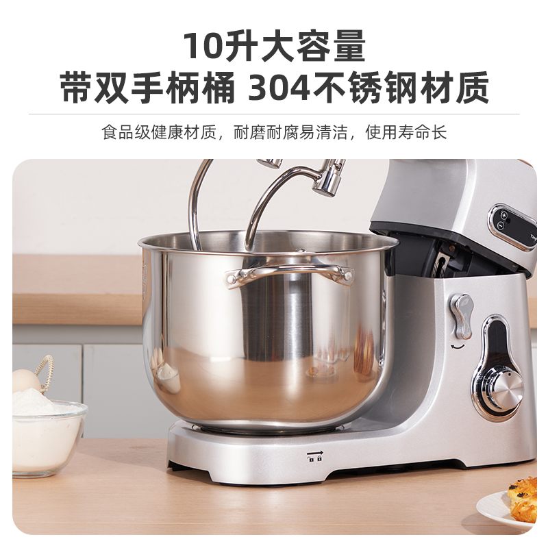 304鋼和面桶10L,雙重自冷散熱裝置保護(hù)電機(jī)壽命;