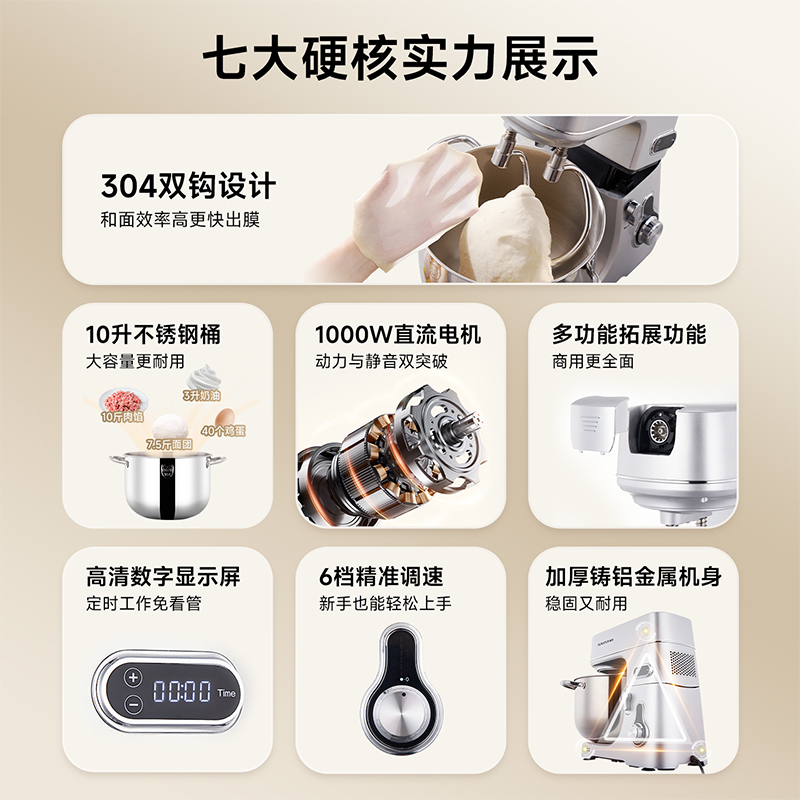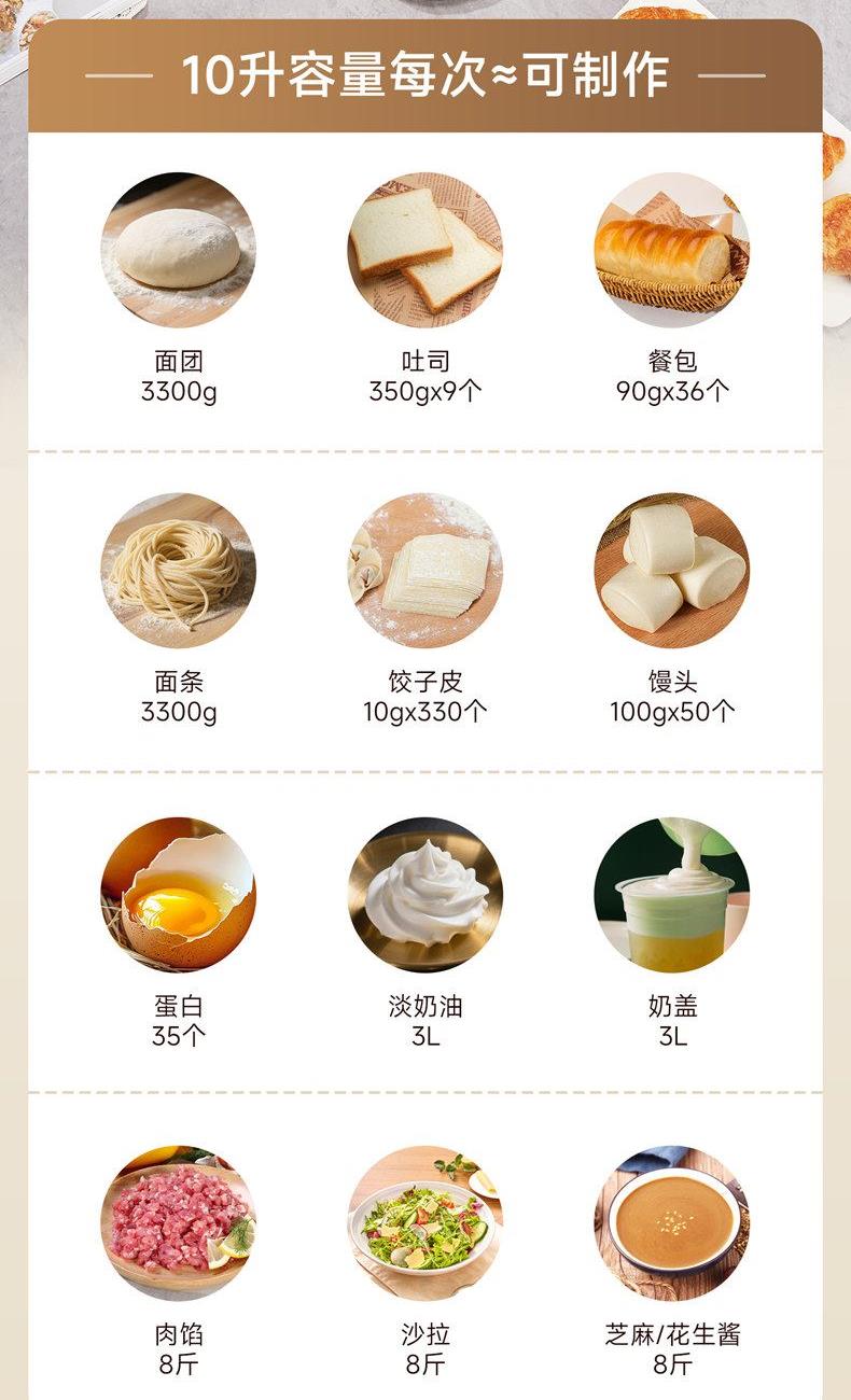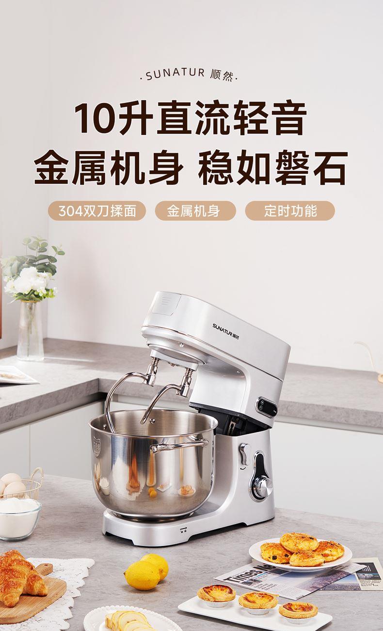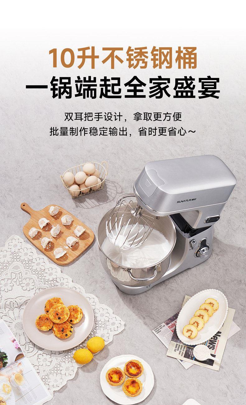 304鋼和面桶10L,雙重自冷散熱裝置保護(hù)電機(jī)壽命;
