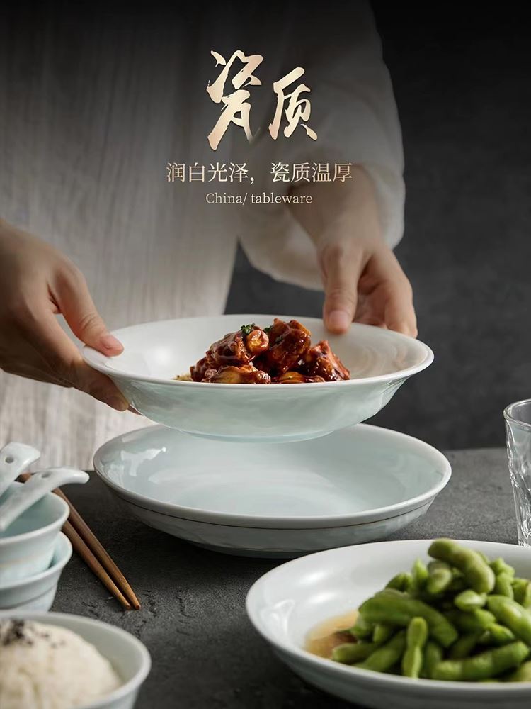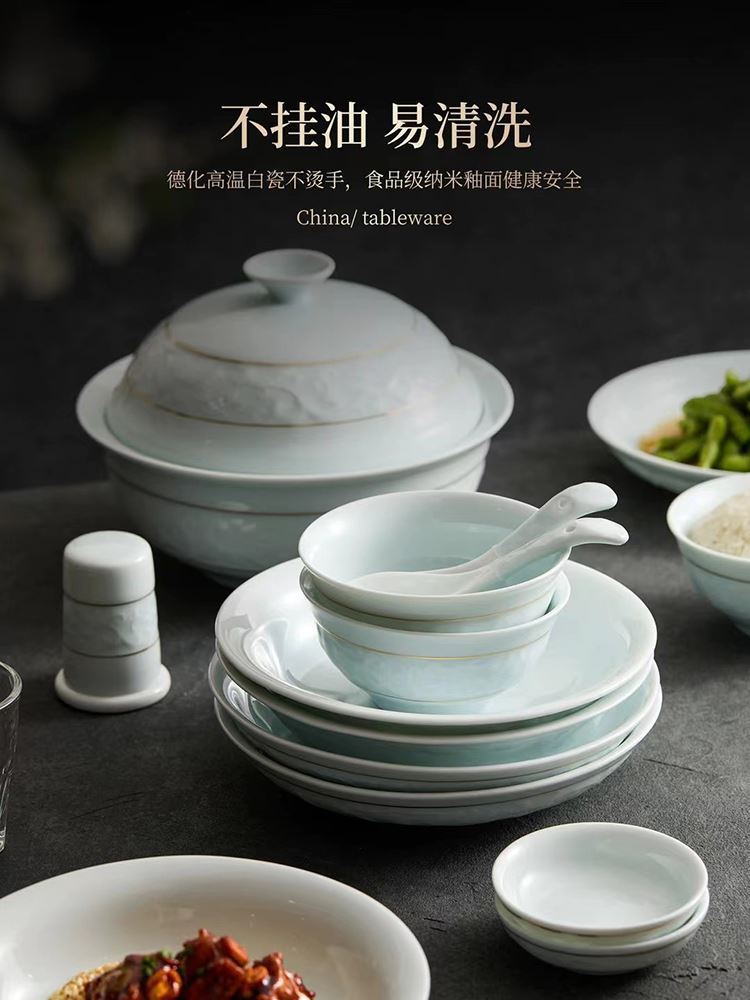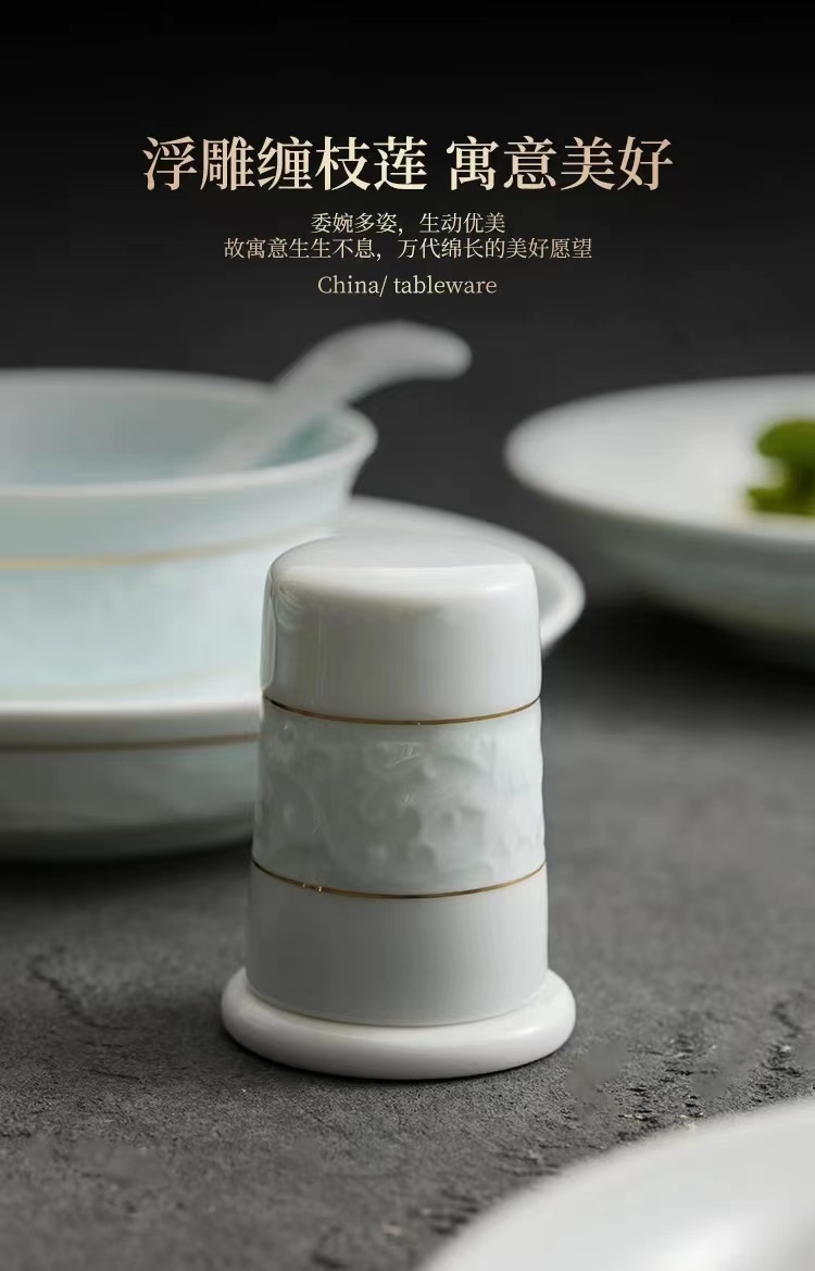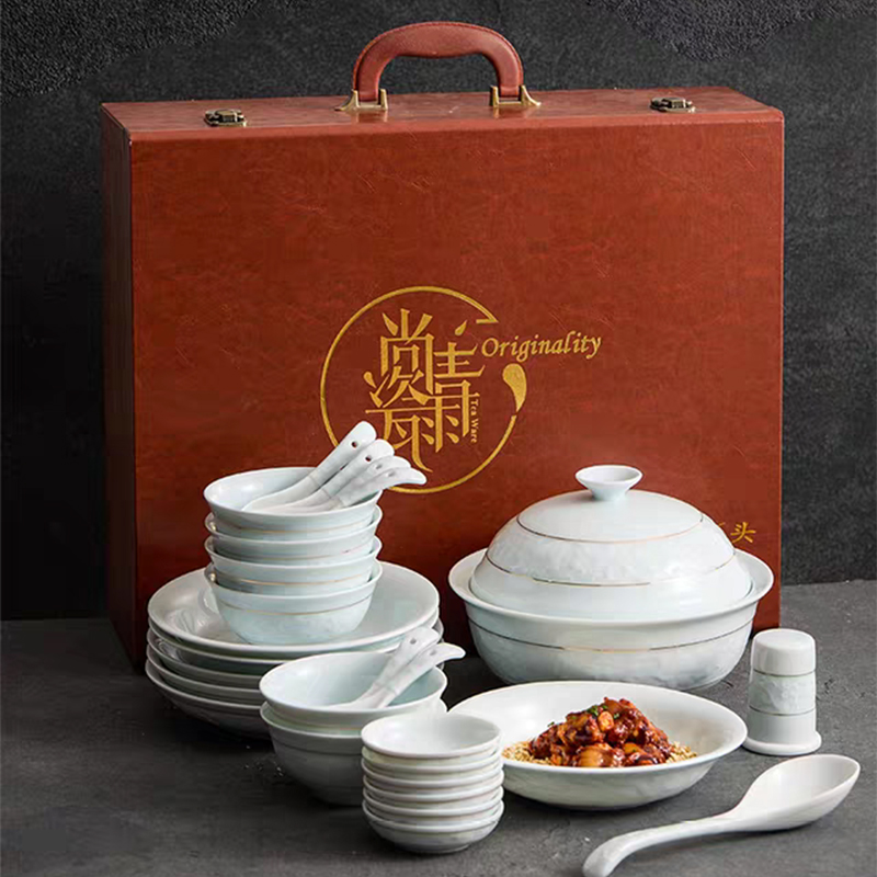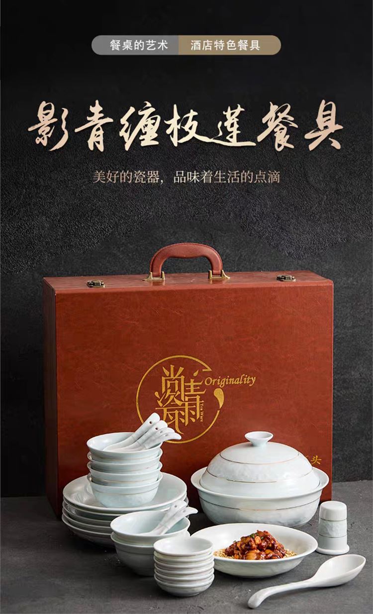 尾橋下窯影青瓷26頭纏枝蓮陶瓷餐具套裝商務(wù)禮品年會抽獎贈品
