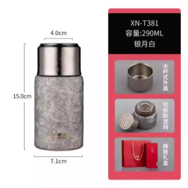 材質(zhì):內(nèi)膽-鈦/杯身-鈦 附加組件:帶防塵袋 顏色:銀月白/遠(yuǎn)天藍(lán)/煙墨灰/云海霧凇/東方朝霞 杯蓋樣式:雙層旋蓋+磁吸蓋 容量:490ml 外箱尺寸:54*38*23.5 cm 禮盒尺寸: 26*12*9.2 cm 毛凈重 :8.5/3.5 耐腐蝕、無(wú)異味 燜茶冷萃,一杯多用 結(jié)晶冰花工藝 保溫保冷 密封防漏 雙層旋鈕