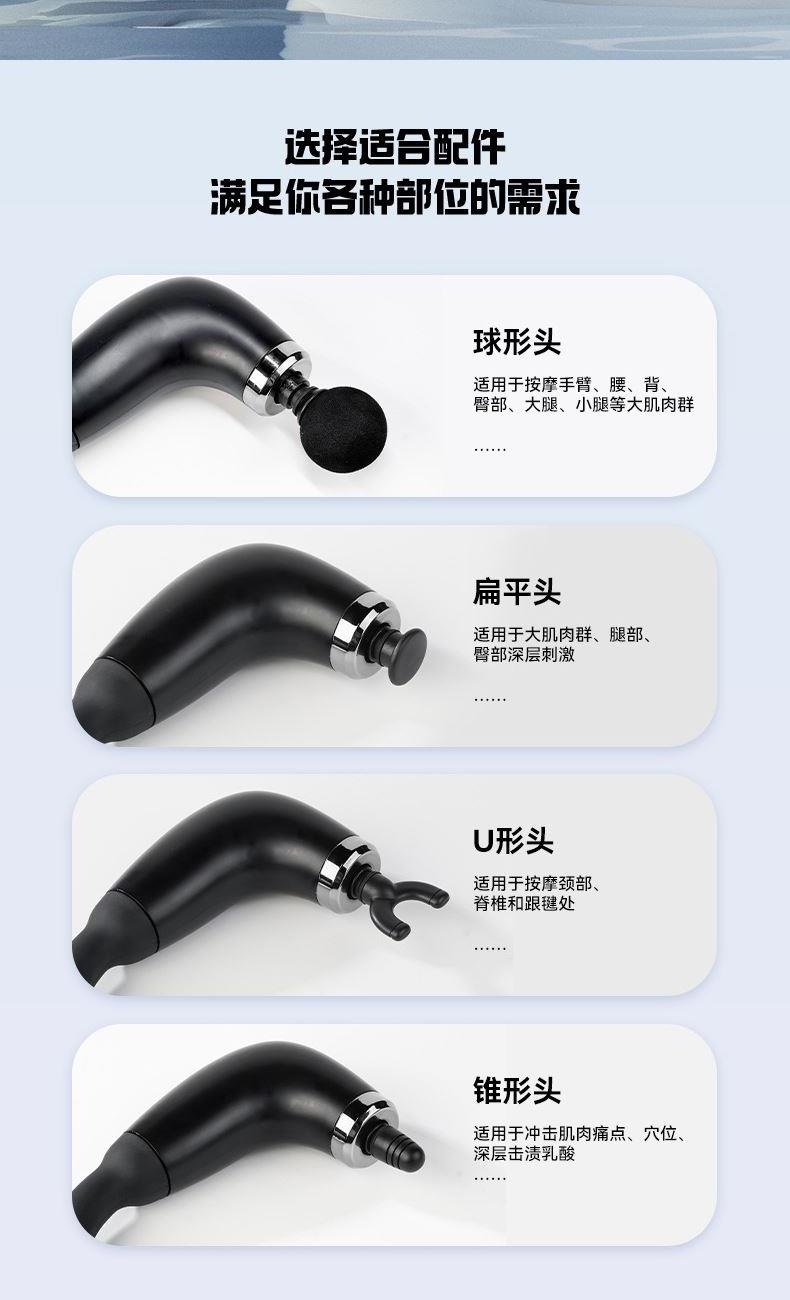 四款專業(yè)按摩頭,照顧每一個(gè)肌群