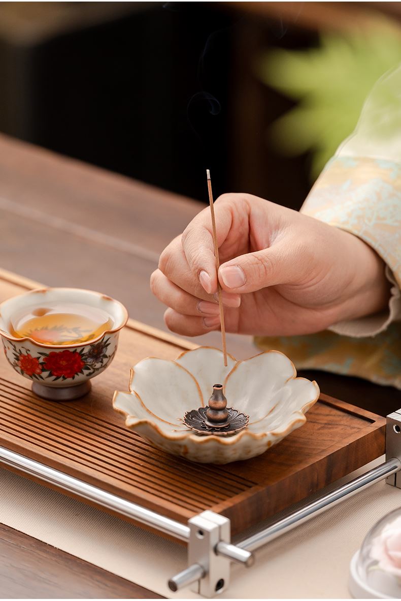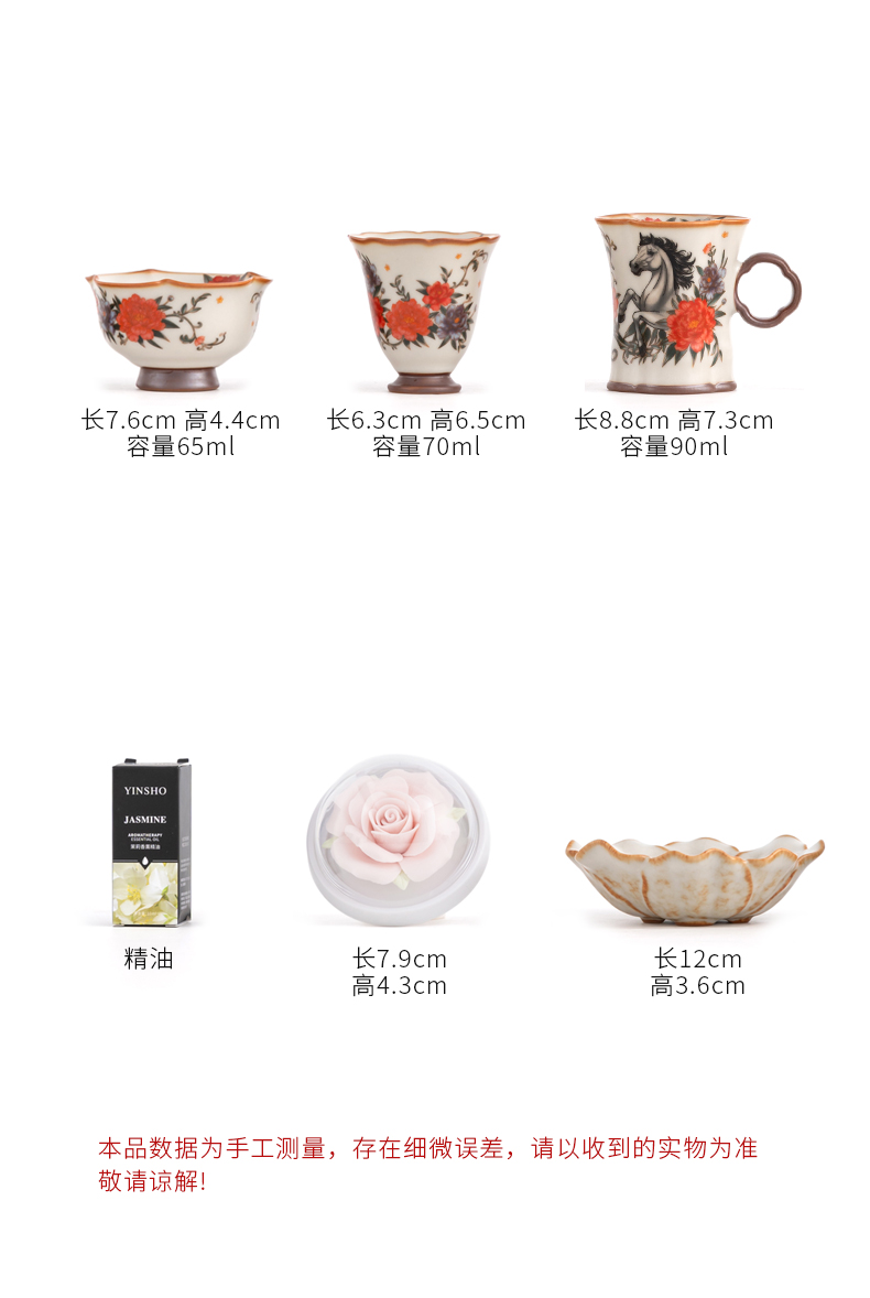 規(guī)格:手柄杯 6*9cm 聞香杯6.5*6.3cm 碗7.6*4.4cm 香盤(pán)12*3.6cm 玫瑰擴(kuò)香器7.9*4.3cm