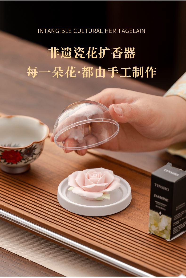 配 制:1手柄杯 1聞香杯 1碗 1香盤(pán) 1玫瑰瓷雕擴(kuò)香器 1精油 1收藏證書(shū) 1禮盒 手提袋