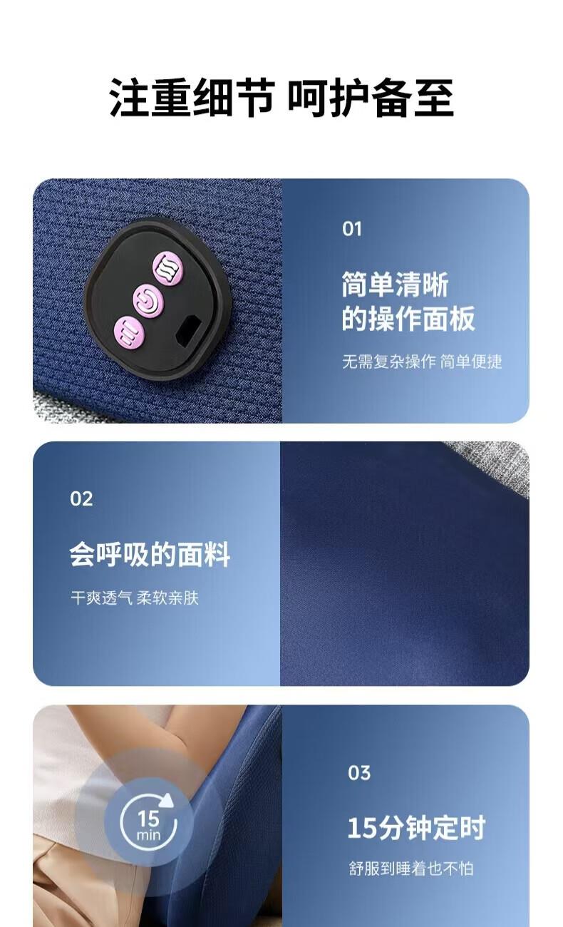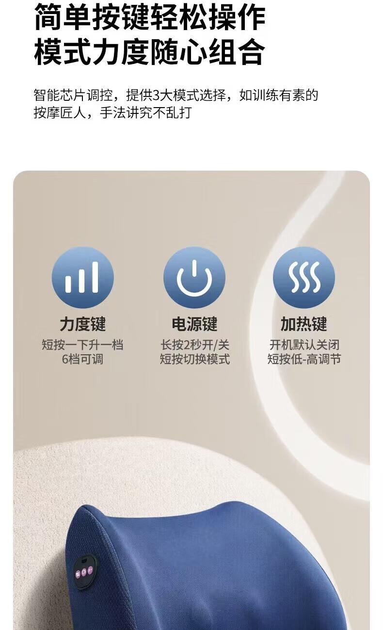 型 號:WK01 額定電壓:12V 額定功率:24W 額定時間:15min 彩盒尺寸:36.5*12*28.5cm 外箱尺寸:65*60*38cm 多功能捶打按摩 3大按摩模式 6檔力度調(diào)節(jié) 2檔加熱調(diào)節(jié) 點陣式紅光熱敷 內(nèi)置鋰電池,可無線使用