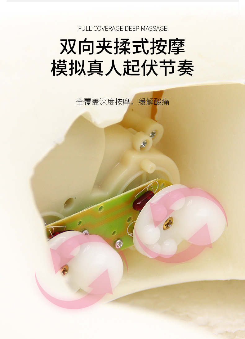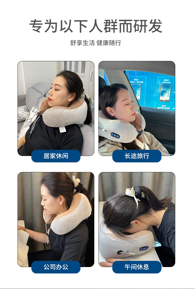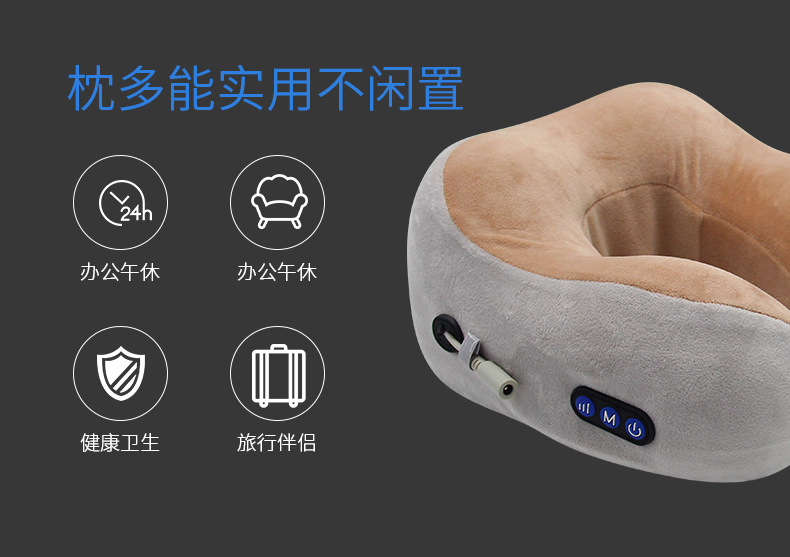 型 號(hào):WD-J08 額定電壓:5V 額定功率:3W 額定時(shí)間:15min 電池容量:800毫安 彩盒尺寸:13.5*21.5*11.5cm 外箱尺寸:60*28*51cm 三種按摩模式三擋力度調(diào)節(jié) 親膚透氣金貂絨面料 慢回彈記憶棉有效吸收頸部壓力 適合辦公/駕駛/旅行等頸椎亞健康人群 給頸椎一個(gè)慵懶的擁抱,讓奔波有處可歇