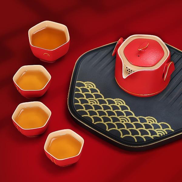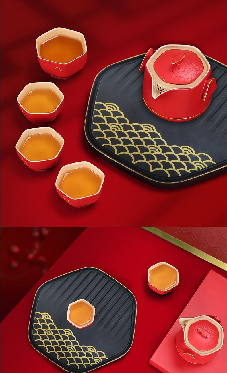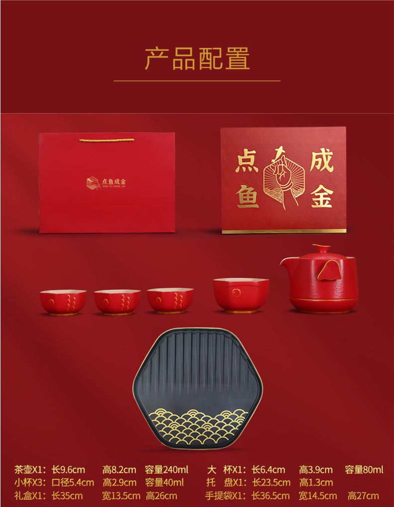 組件:一壺四杯+茶盤+精美禮盒 材質(zhì):高白瓷 包裝規(guī)格:長(zhǎng)35cm寬13.5cm高26cm 定制:產(chǎn)品和包裝可定制LOGO 顏色:紅色