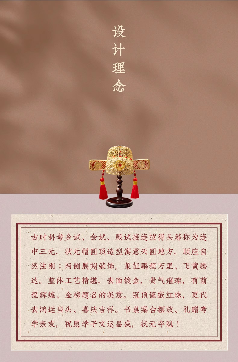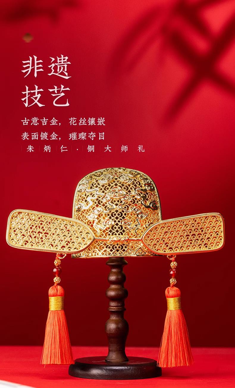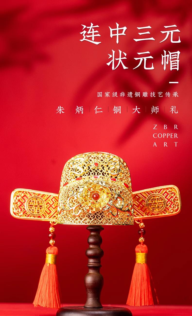 朱炳仁銅連中三元狀元帽(含支架)C110424120045 禮品已成功加入PPT!