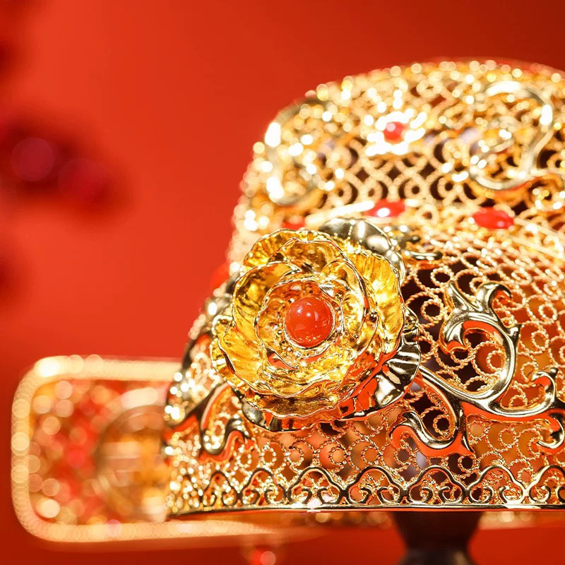 朱炳仁銅連中三元狀元帽(含支架)C110424120045 朱炳仁銅連中三元狀元帽(含支架)C110424120045