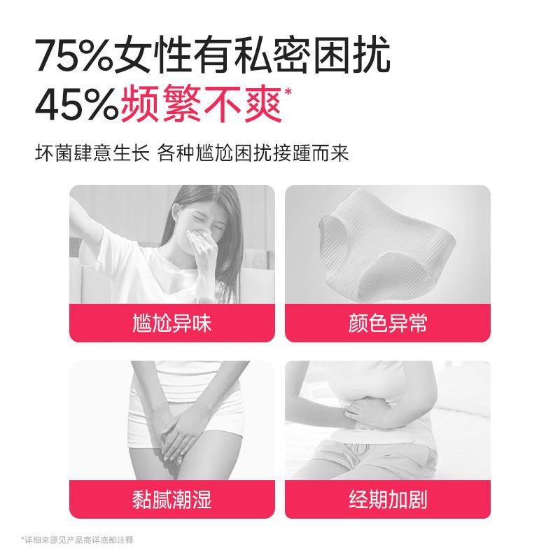 適用人群: ① 經(jīng)常穿緊身褲、牛仔褲,不透氣 ② 穿不干燥的內褲、未保持干燥透氣 ③ 私處異味,影響女性健康和自信 ④ 經(jīng)期、孕期、哺乳期、日常養(yǎng)護均可食用
