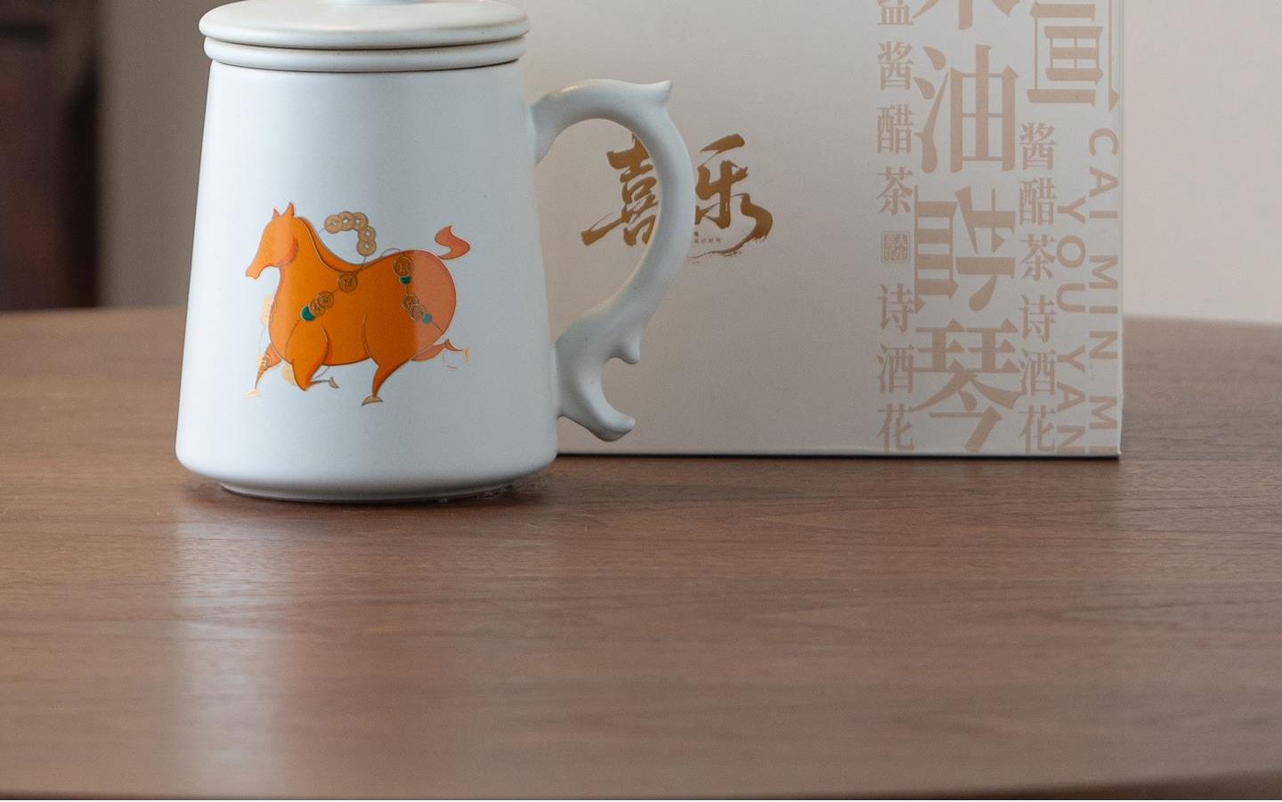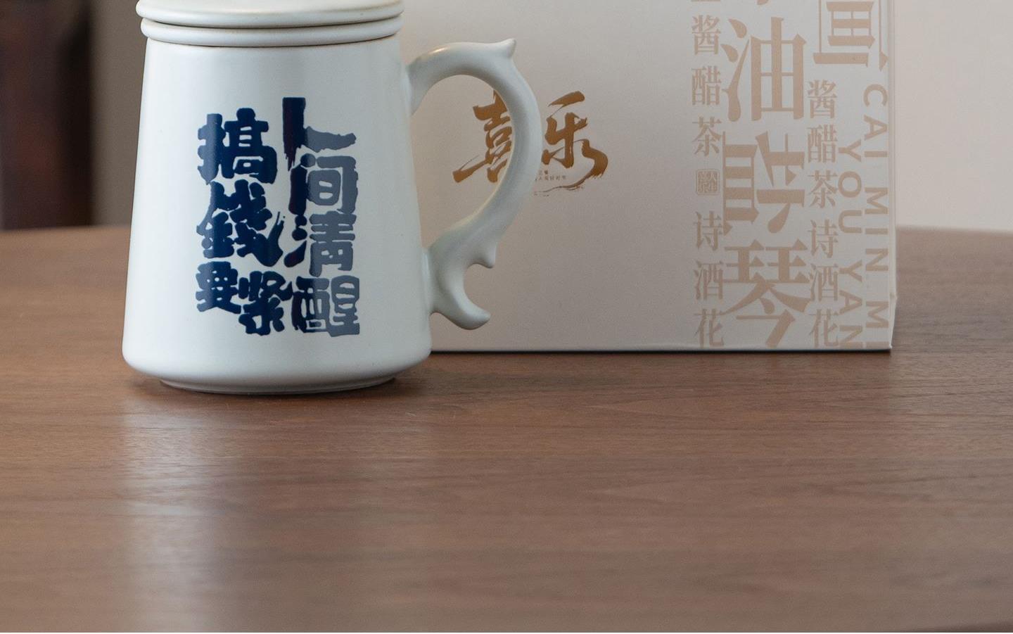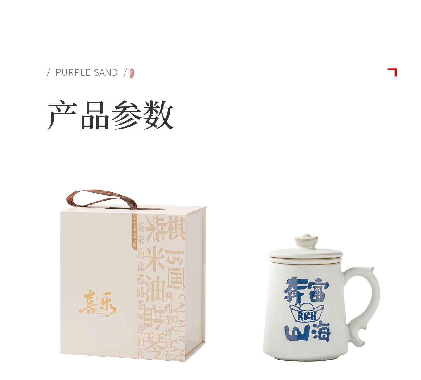 配置:辦公杯*1,禮盒*1. 尺寸:辦公杯長13cm高14.5cm容量450ml, 禮盒:長17cm寬12cm高19cm。 款式:暴富系列/馬上有福系列。