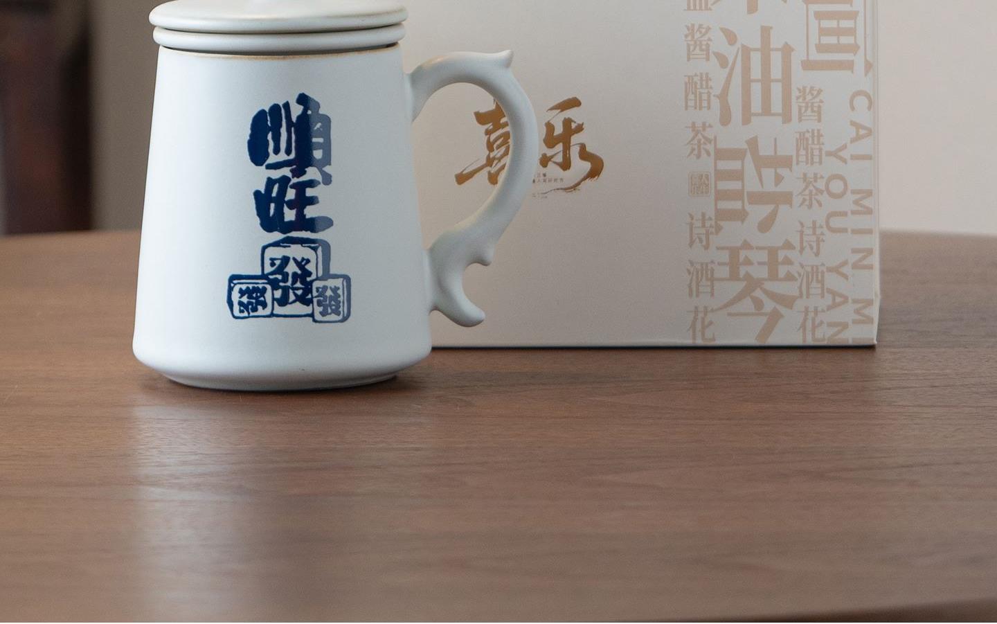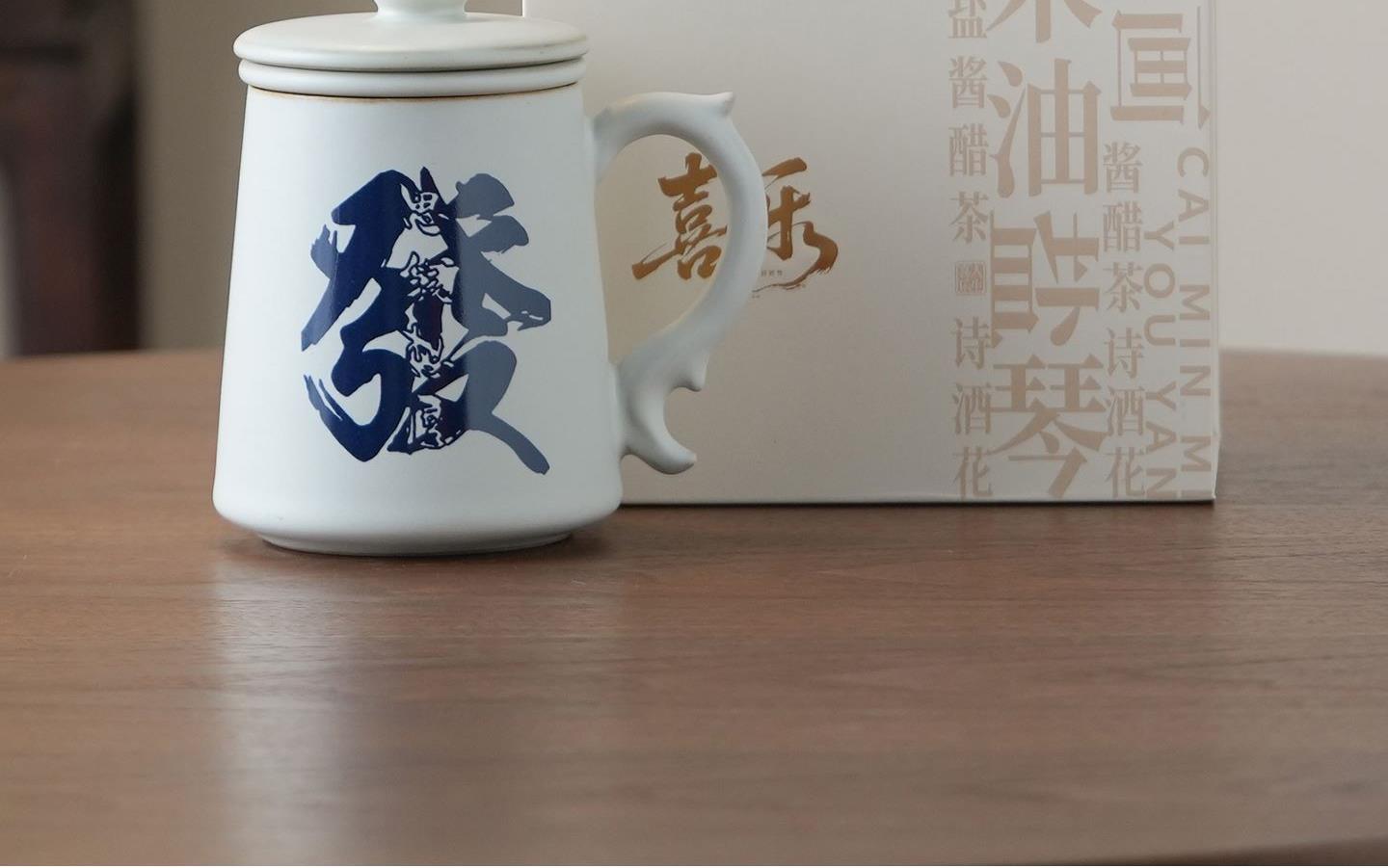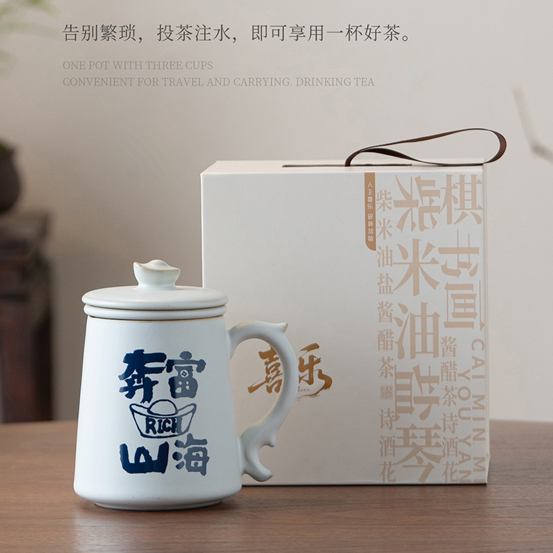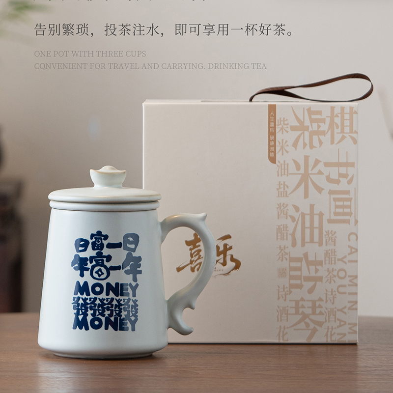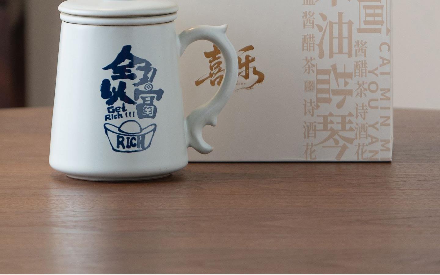 尾橋下窯月白汝窯陶瓷暴富系列辦公水杯商務(wù)伴手禮年會贈品開業(yè)禮