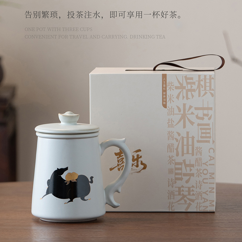 尾橋下窯月白汝窯陶瓷暴富系列辦公水杯商務(wù)伴手禮年會贈品開業(yè)禮 禮品已成功加入PPT!