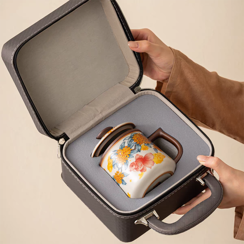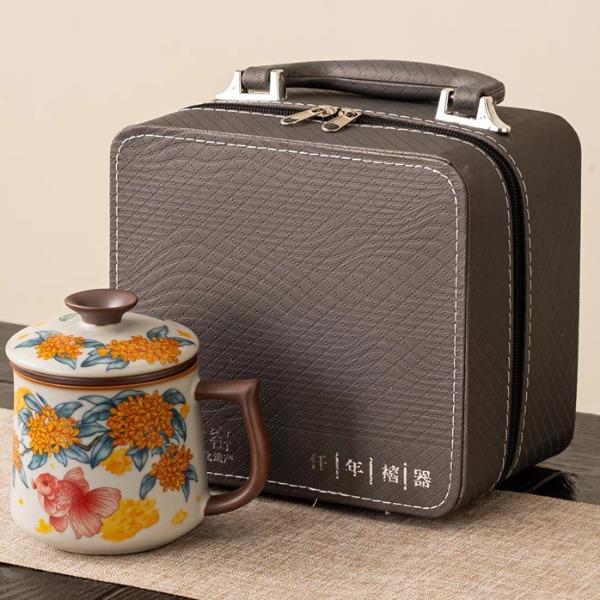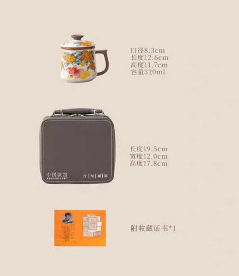 配 制: 1杯 1蓋 1茶漏 1收藏證書 1禮盒 材質(zhì):汝黃瓷 規(guī)格:12.8*11.7cm 禮盒19.5*17.8cm 容量:500ml 推薦說明:馬年開門紅禮品,馬上有錢,馬上有福。金鯉桂花,寓意金貴,連年有魚。配收藏證書,皮盒裝。亞黃汝瓷,瑪瑙入釉,蟬翼開片。技術(shù)新品。畫面堆料技術(shù),富有立體浮雕質(zhì)感,真實感強(qiáng)。杯身開片,可養(yǎng)瓷。